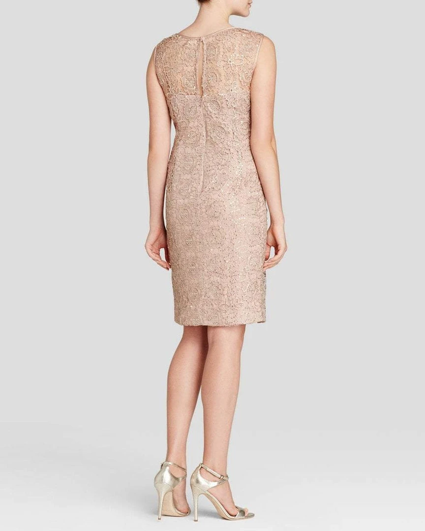 | Details: | Sleeveless, Lace and sequin overlay, Back keyhole, Lined, Knee length, Back zipper |