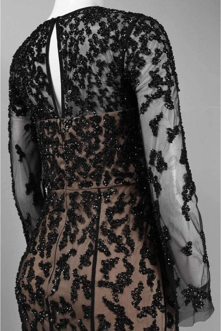 Surround yourself in limelight with this illustrious illusion gown by Adrianna Papell 91898370. The dress features sheer long sleeves and an illusion jewel neckline. The nude lined bodice is lavishly adorned with sequins down to the full length sheath skirt. The back has a charming keyhole and a zipper closure. This design by Adrianna Papell is all set to make that evening your extra special!