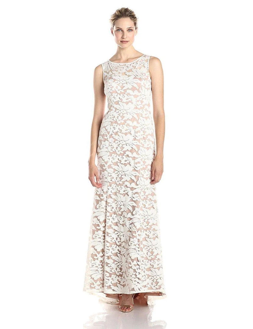 Be simply gorgeous in this exemplary Adrianna Papell 91906310 evening gown. The sleeveless bodice features a bateau neckline while the back features a big keyhole. This fully embroidered dress gracefully flows to a full length hemline. The pleated skirt ends gorgeously with a back train. A picture of sophistication is defined in this Adrianna Papell creation.