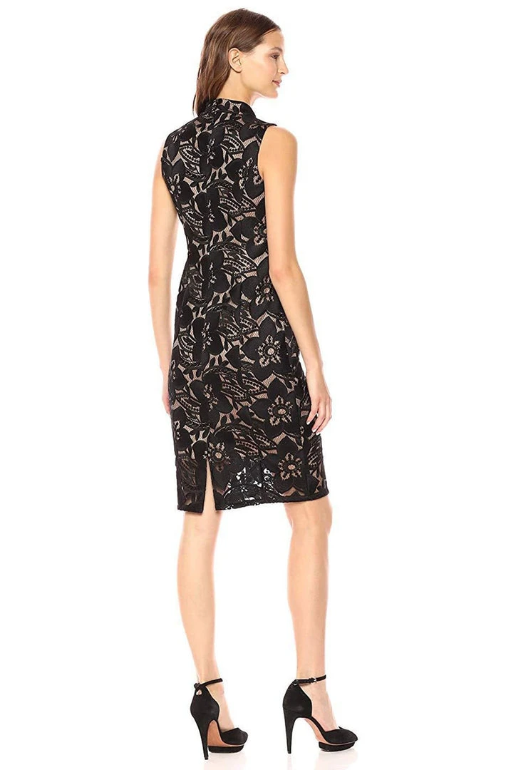 Be elegantly beautiful in this lovely cocktail dress by Adrianna Papell AP1D101525. Crafted in floral lace, this ensemble features a fitted sleeveless bodice with a high neckline and full back. The skirt reveals a sheath silhouette that cascades to the knee-length with a back slit for ease of movement. Display your natural beauty in this Adrianna Papell creation.