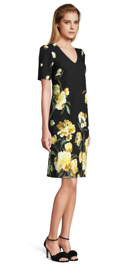 Step out in a gorgeous dress from Adrianna Papell AP1D102017. Fully designed in floral print, this stunner features a V neckline and short sleeves as the sheath skirt tapers to above the knee hemline. A center zipper closure secures the full back. Enjoy a carefree evening in this beautiful Adrianna Papell dress.