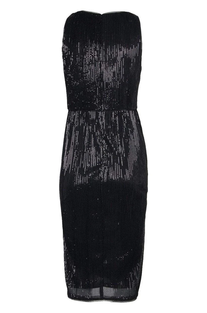 | Details: | Sequins, Sleeveless, Fitted bodice, Sheath skirt, Side slit, Back zipper |