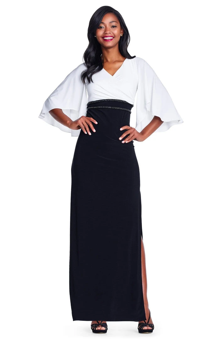 Look undeniably elegant and lovely in this stunning evening dress by Adrianna Papell AP1E203560. The fitted bodice features a V neckline and quarter length butterfly sleeves complemented with a full zipped up back. Bead embellishments adorn the waist as a side slit highlights the full length sheath skirt. Dress to impress on your next formal event in this simple but captivating Adrianna Papell AP1E203560 ensemble.
