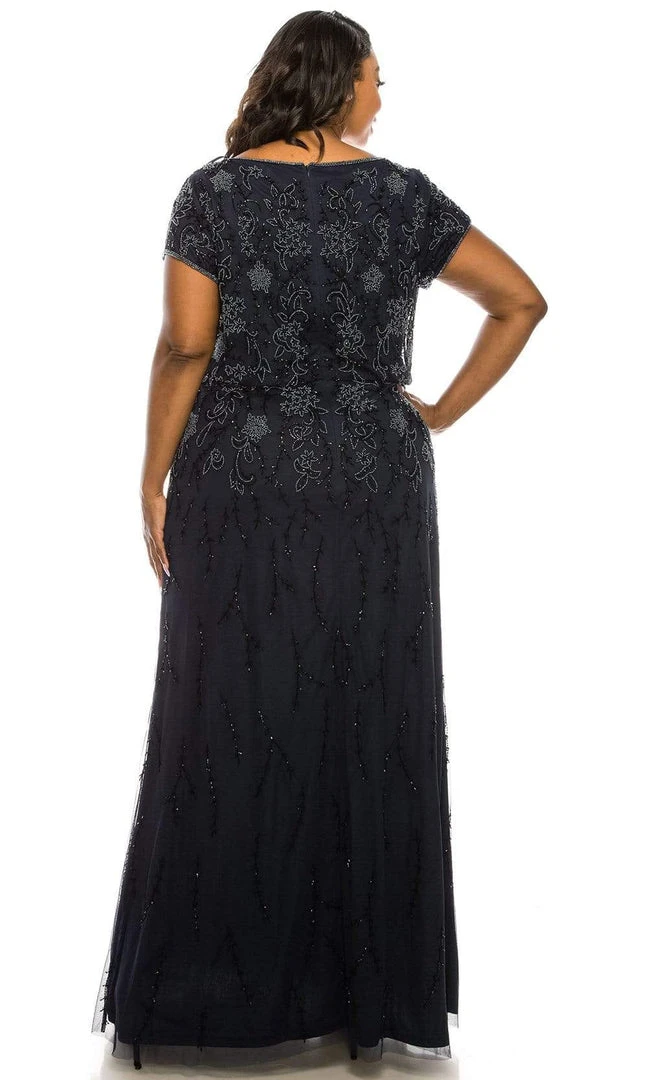 Enter the party and do that walk of a regal beauty in Adrianna Papell AP1E205375W. This long dress is for plus size women at their evening events. It is embellished with bugle beads for details and features bateau neckline and short sleeves. It uses back zipper and flaunts a full length A-line silhouette. You are a breath of fresh air in this dreamy Adrianna Papell dress.