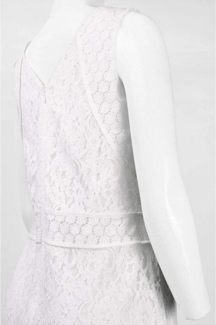 Radiate a young and sophisticated style in this refined Adrianna Papell 011242730 creation. Showcasing mixed cotton lace fabric of varied dainty textures lined with decorative piping, this delicate piece shows a sleeveless, jewel neckline and a v-shaped open back. Accented with a paneled waistband, this sheath skirt is crafted with lace that falls down to short hemline. Look like an ethereal beauty at your special date in this lovely Adrianna Papell masterpiece.