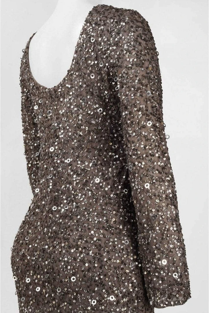 Reap appreciative glances and awe-inspired attention in this highly embellished Adrianna Papell 41915670 creation. Stunningly embellished with sparkling sequins and beads, this gorgeous piece showcases a jewel neckline, sheer ornate long sleeves and a scoop open back. Twinkling from every angle, the figure-flattering sheath skirt flows down to complete at a short hem. Make people stop and stare at your iridescent beauty in this Adrianna Papell masterpiece.