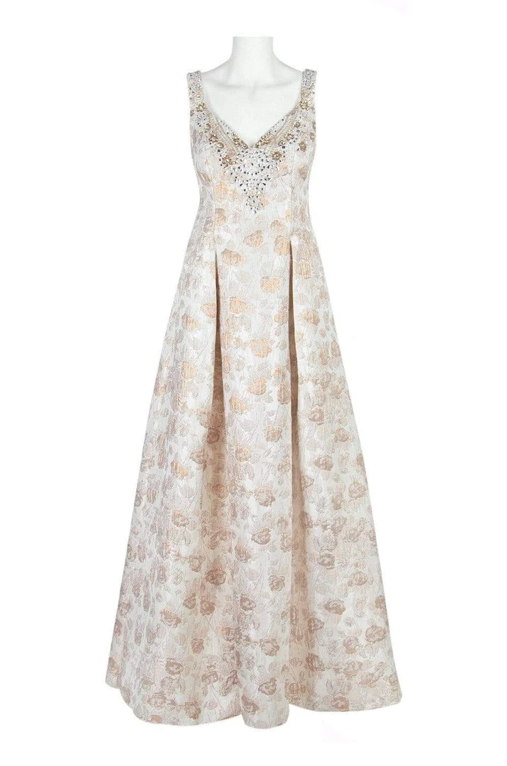 Walk in glamour and let all heads turn on you in this creation by Aidan Mattox MD1E201398. This elegant ensemble graces a sleeveless, sweetheart neckline with shoulder straps. The fitted bodice is richly ornate with embellishments. Made of jacquard fabric, the V-back has a zipper closure while the skirt opens in a full length A-line silhouette. Dress to impress on your next formal event in this simple but captivating Aidan Mattox dress.
