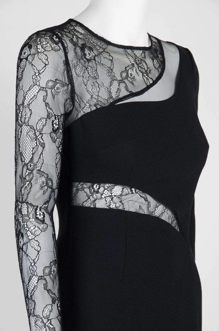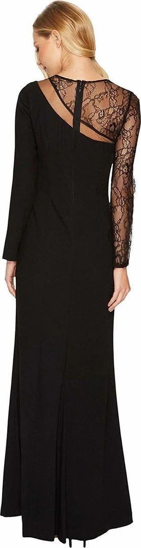 | Details: | Lace, Crepe, Long sleeves, Fitted bodice, Sheath skirt, Slit, Back slit |