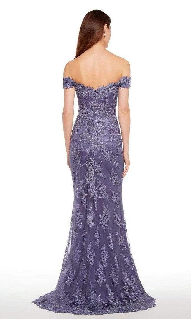 Show off your classy style when you wear this Alyce Paris 27249. Allures in an off the shoulder neckline with fitted bodice embellished with lace appliques. The full length sheath skirt finishes in a sweep train for added drama. Show off in this eccentric design from Alyce Paris.