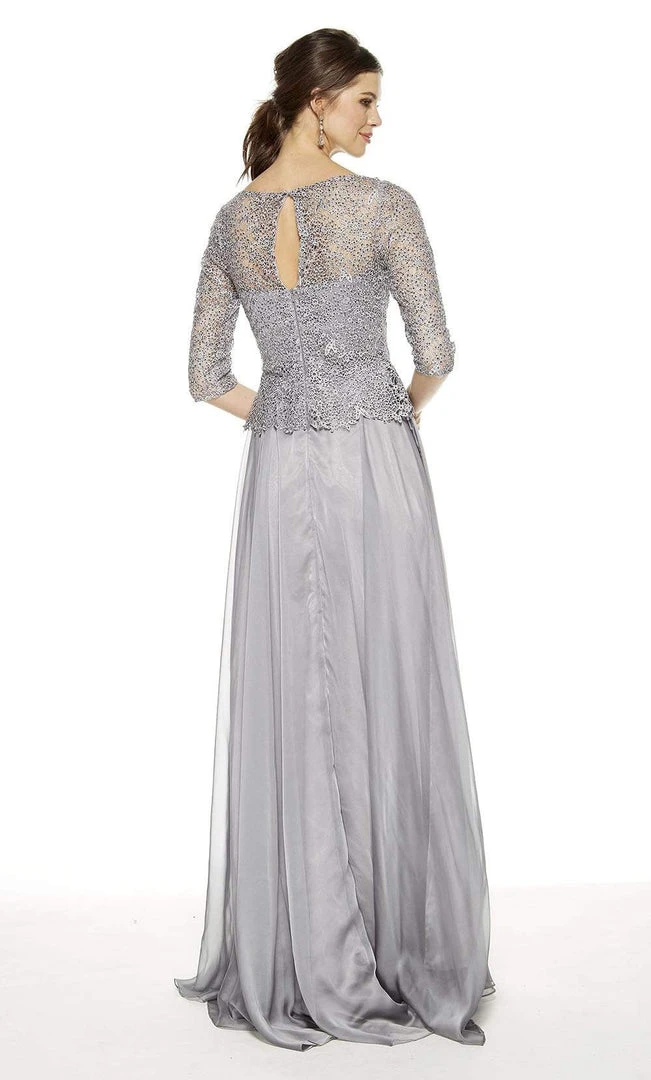 Look impeccably polished as you sweep them of their feet in this dazzling Alyce Paris 27386 masterpiece. This lovely piece is tailored with a bateau lace neckline with a sweetheart notch underneath. The back is detailed with keyhole cut and a zipper closure. Completing this look is a long sheath flowing skirt. Look sophisticated and mature in this simple yet chic in this Alyce Paris masterpiece.