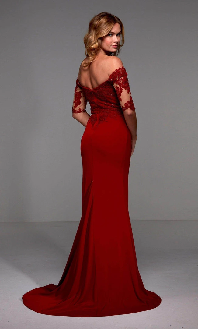 Promote attention-grabbing style in this stunning Alyce Paris 27518. The dress features a sweetheart neckline with sheer short sleeves in an off-shoulder frame and secured with a zipper closure. Adorned with beautiful lace appliques along the sleeves and on the fitted bodice, this figure-hugging dress styled in a sheath silhouette as the skirt breaks with a high slit and complemented with a sweep train. This Alyce Paris make you feel all royal and radiant looking. Model is wearing the Claret color.
