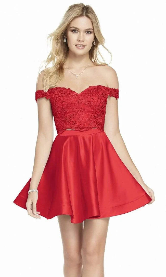 Heighten your charming appeal when you wear this lovely cocktail dress by Alyce Paris 3827. This two piece ensemble features a fitted bodice adorned with scattered heat stones for a sparkling effect crowned with an off-shoulder neckline. A solid band crowns the softly pleated a-line skirt that cascades to the mid-thighs as the mid-open back is secured with a center zipper closure detail. The night is yours in a spectacular piece from Alyce Paris design.