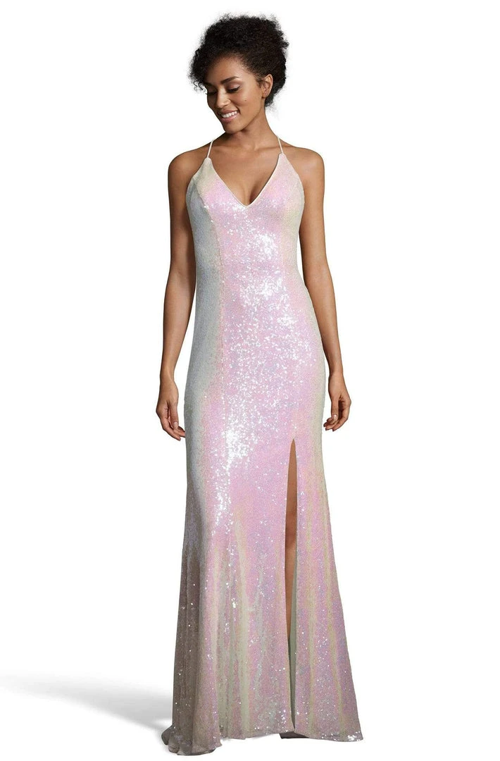 Be ready to fascinate everyone with this stunning Alyce Paris 60822 evening gown. This glamorous full sequin ensemble features a fitted bodice topped with a sleeveless, V neckline with lace-up support that crisscross from the open back. Seam lines define a dazzling silhouette along the curves of bust, waist and hips, while a high-slit on the left leg highlights the sheath silhouette skirt as it drops down to the floor with a sweep train. This Alyce Paris creation is truly a definition of glamour and sexiness.