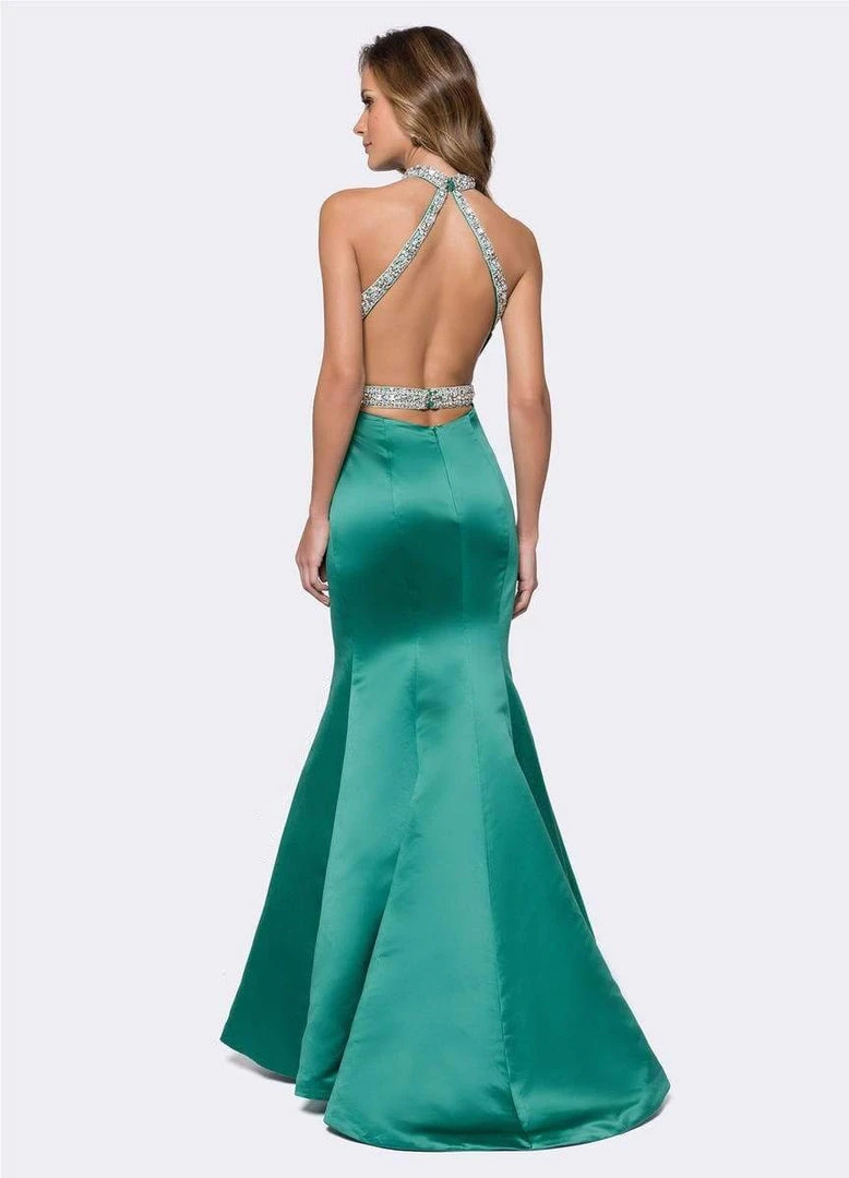 Capture that striking presence and get everyone’s attention in Ashley Lauren 1192. Stuns in a sleeveless, high halter neckline with collar and belt embellished with beading. The fitted bodice has a sexy open back while the mermaid skirt runs in full length hem finishing in a sweep train for added drama. This Ashley Lauren dress is perfect for the girl who wants to stand out from the crowd while looking glamorous.