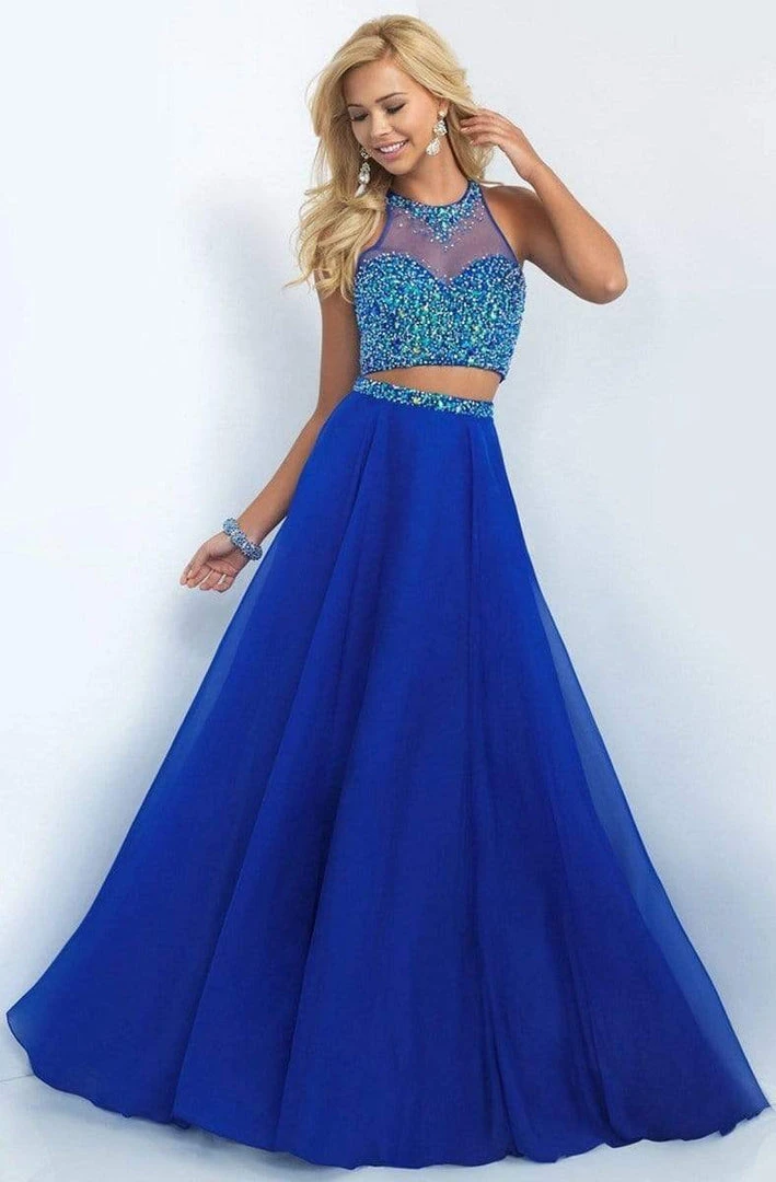 Look marvelous for your next formal affair wearing this two-piece evening gown by Blush 11062. The cropped top has sheer fabric at the upper portion and sparkling stones at the bodice. The midriff is bare. The matching skirt vaunts glittering detail at the top of the waist. The skirt has a gentle A-line silhouette and finishes with a full length hem. This Blush gown is a brilliant pick for any special party.