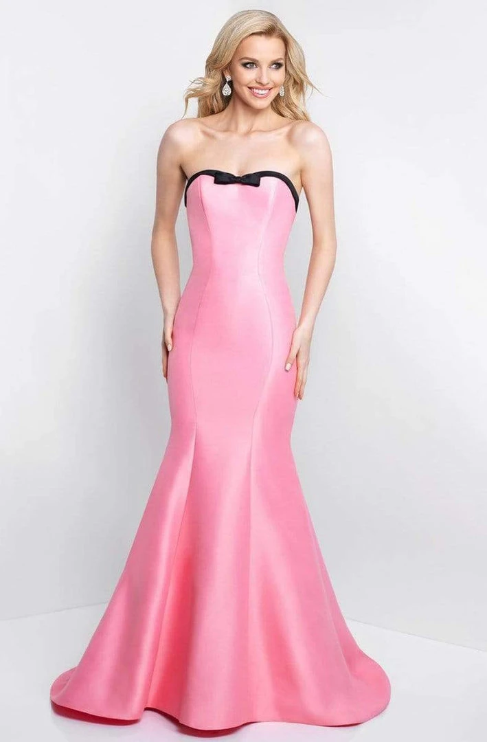 Look every bit like a Parisian beauty as you radiate charm in this dazzling Blush C1046 creation. Impeccably sculpted with seams on a soft Mikado fabric, this fascinating piece reveals a strapless modified sweetheart neckline accented with a contrasting band and bow accent. The mermaid skirt forms a flaring flute before creating an amazing finish from knees to a full-length silhouette. Glamorously flourishing contrasting ribbon accents trailing from the mid-open back down to a sweeping train that pools impeccably down to a sweeping train. Shine like the glamorous siren that you are at your upcoming party in this Blush masterpiece.