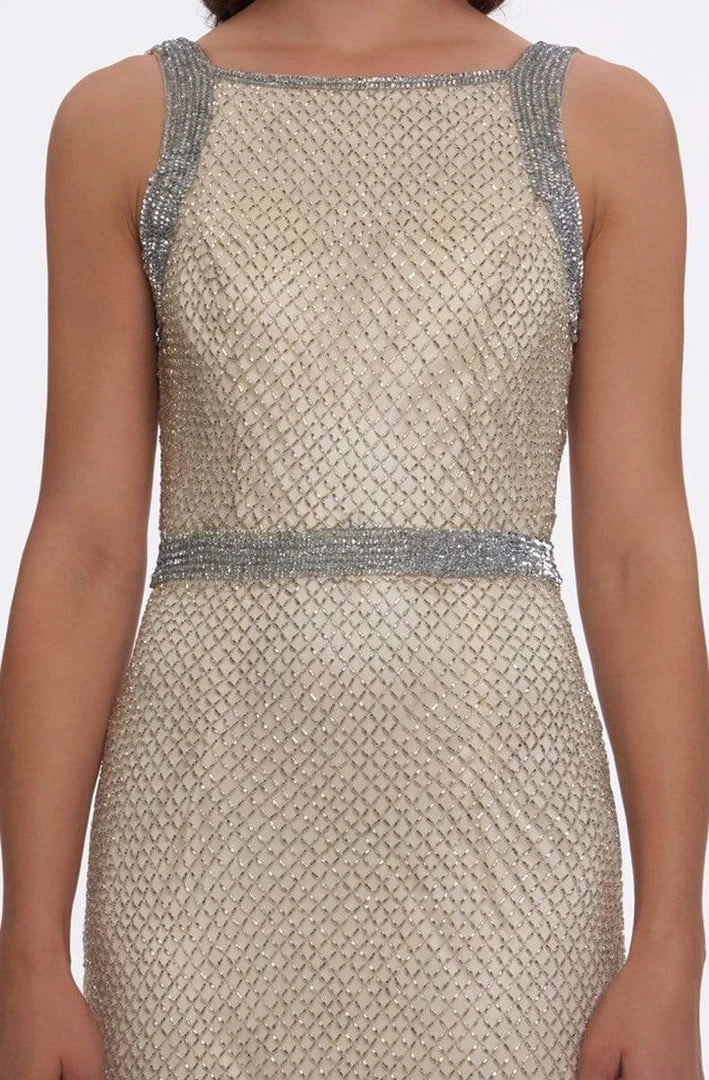 Turn yourself into a timeless beautiful goddess in this evening dress by Cassandra Stone 4709. This framed sleeveless dress has square neckline and backless design with drape accent. Shimmering tonal beaded net forms the overlay on the sheath silhouette dress. The skirt has a distinct fitted shape with a full-length hem and subtle train finish. Feel magnificent for your special night out in this Cassandra Stone creation.