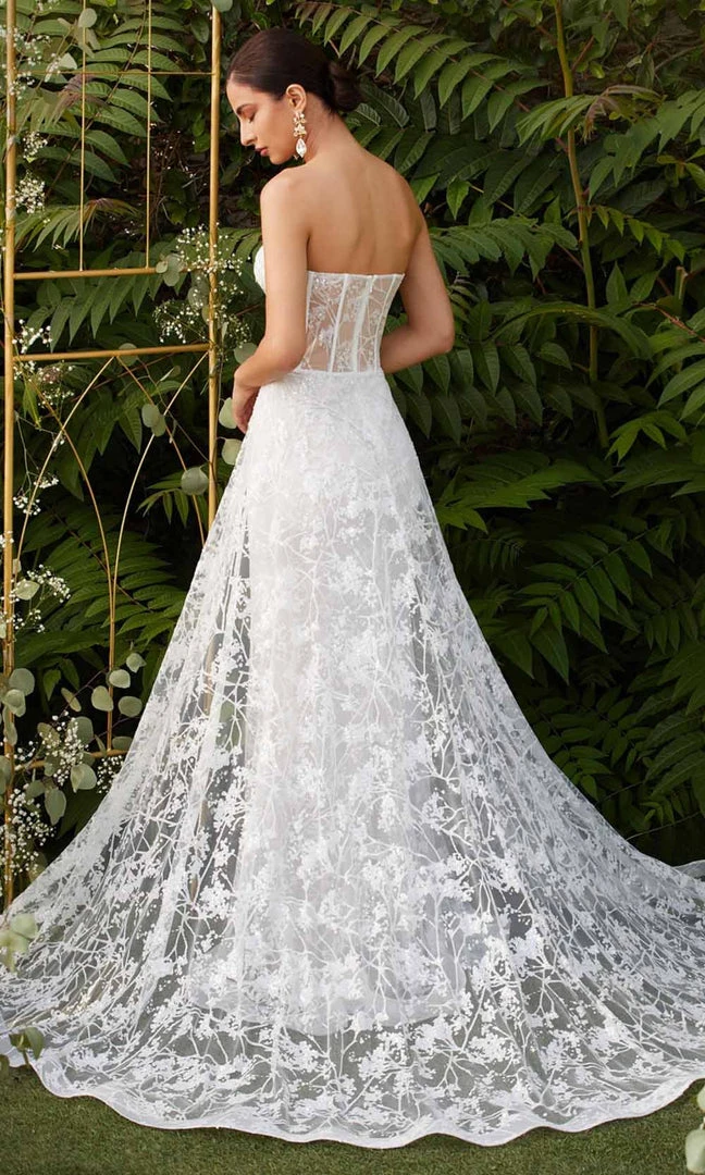 Look immaculately gorgeous in Cinderella Divine CB046W. Delights in a strapless, sweetheart neckline with corset bodice highlighting your figure. The gown is designed with stunning floral appliques that continue to the trumpet skirt. Completing the look is a dramatic overskirt. This Cinderella Divine dress will let you celebrate that divine feminine beauty!