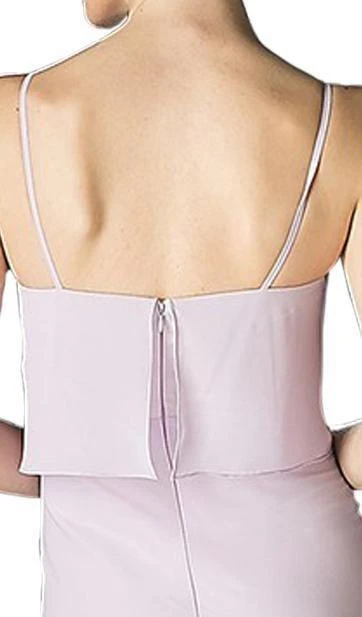 | Details: | Sleeveless, Spaghetti Straps, Surplice Ruffled Panels, Mid-Open Back, Back Zipper Closure, Full Length Hem |