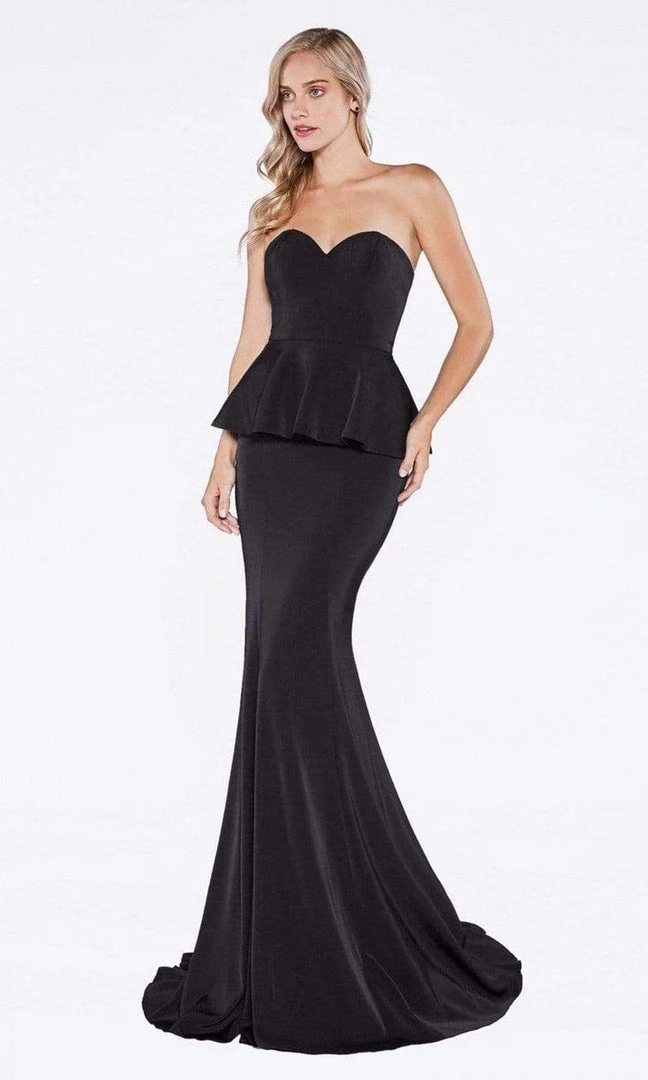 Take their breath away with this stunning Cinderella Divine P102. Look glamorous in a strapless, sweetheart neckline with peplum detail accented with a metallic belt. The back has a zipper closure while the trumpet skirt runs in full length hem and finishes in a sweep train. This Cinderella Divine dress will make you feel all royal and radiant looking.