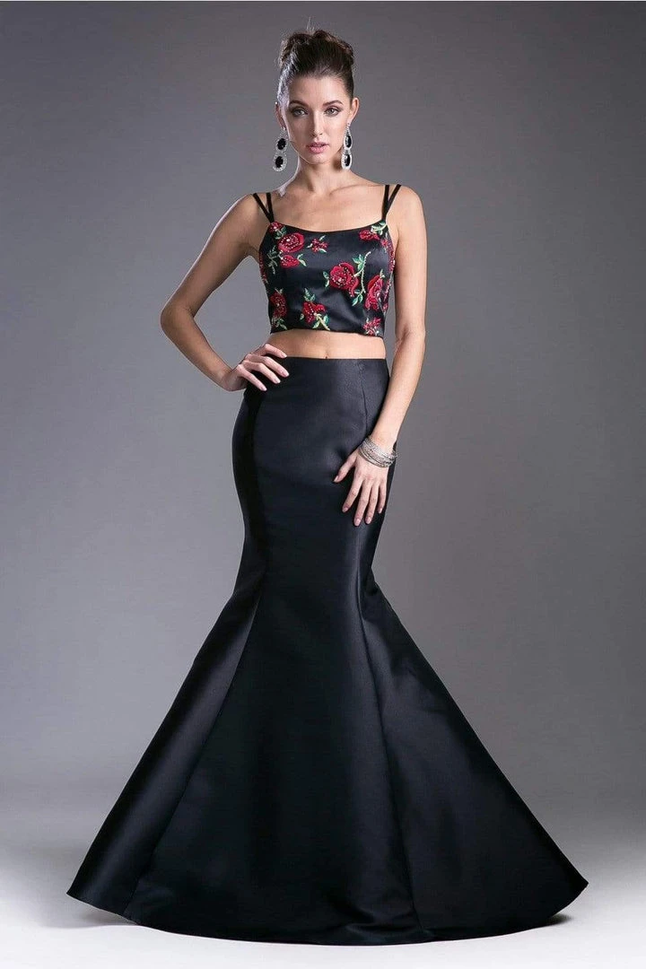All eyes will be on you in this wonderful Cinderella Divine KC1737 masterpiece. This two piece set features a fitted crop top beautified with beaded floral design topped with a wide scoop neckline and an open V back. The seamed skirt continues to the knees as it flares gorgeously to the floor finished off with a sweep train. This evening gown by Cinderella Divine is a red carpet knockout!