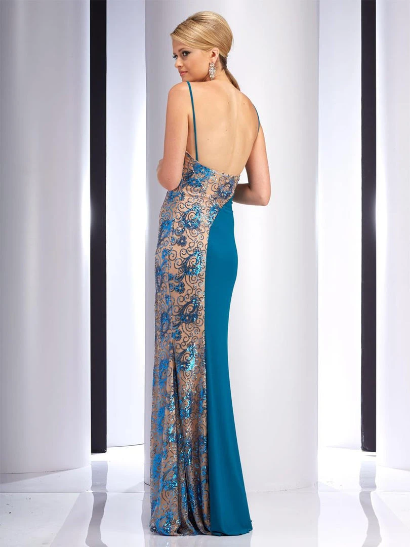 Pull out the right stops with this luxe Clarisse 2817 creation at your opulent party. Impeccably styled with sinuously tailored panels with a sequined nude section, this glamorous piece unveils a modified sweetheart neckline framed with slender shoulder straps and a straight mid-open back. Showing off swirls that creates floral like accents, graceful lines contours the sheath silhouette that parts with a sultry thigh high slit and softly cascades down to a lush full-length hemline. Stand out with this boldly embellished Clarisse masterpiece.