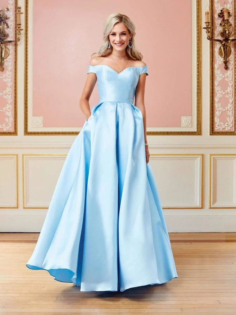 Be at the front and center of the flashing cameras as you flaunt a regal style in this Clarisse 3442 creation. Perfectly tailored with seams to accentuate that lush silhouette, this Mikado stunner unveils an alluring off-shoulder neckline highlighted with a pronounced sweetheart notch. Crafted with a thin ribbon inset band and a lace up corset back detail, a lushly box-pleated skirt reveals side pockets before it voluminously flares down in a sumptuous Ballgown silhouette. Make your fantasies come true as you grace every party like a modern princess in this Clarisse masterpiece.