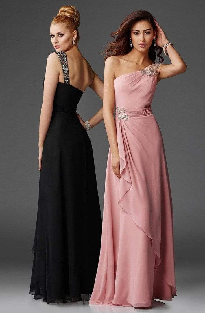 Make the party goers stop and stand in awe with your fascinating style in this splendid Clarisse M6403 creation. Beautifully flourishing impeccable pleats along the bodice, this impeccable piece flaunts an asymmetrical neckline supported with a sheer ornate shoulder strap that navigates to its straight mid-open back. Lavishly embellished with exquisite beaded accents, this beauty is topped on one shoulder and along the pleated waist. Softly draping down to form a wrapped style, the layered A-line skirt showcases ruffles that navigates down to a lush full length hem. Claim your spot among the stars while revealing an ethereal grace in this Clarisse masterpiece.