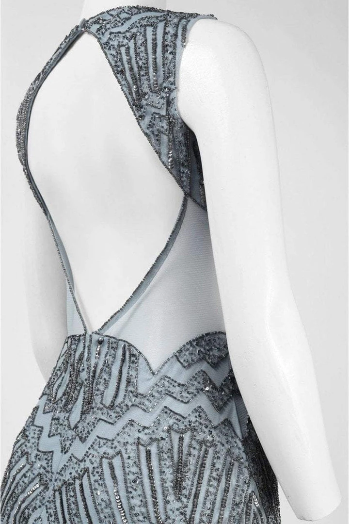 Sizzle and shine with this short dress by Adrianna Papell 041900230. Features a sleeveless, V-neckline with bodice richly decked with intricate beadwork. The back reveals a diamond cut with sheer panels and finishes the look in a sheath skirt. This Adrianna Papell dress is perfect for a girl who wants the standout style and flawless fit.