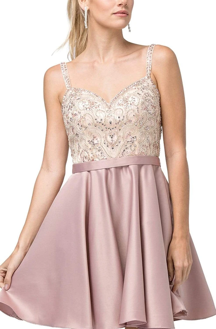Enter the party and do that walk of a regal beauty in Dancing Queen 3125. This cocktail dress pleases in a sleeveless, sweetheart neckline with shoulder straps. The fitted bodice is ornate with detailed beading and features a V-back with a zipper closure. The waist is wrapped in a thin band and begins a mid-thigh A-line skirt with pockets. Mesmerize the crowd with your sophisticated flair in this Dancing Queen masterpiece.