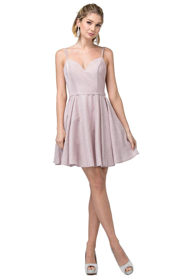 Heighten your charming appeal in this cocktail dress by Dancing Queen 3144. This short cocktail dress is crafted in iridescent cracked ice taffeta fabric, fashions a sleeveless sweetheart neckline with double spaghetti straps. The princess cut bodice is paired with a mid-open back with center zipper closure, while the waist is enclosed by self-fabric band leading to the gathered A-line cocktail length skirt. Be the star of the show at homecoming or your next party in this Dancing Queen creation!