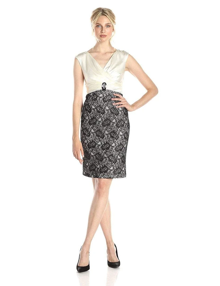 Capture the glamor as you walk on this stunning gorgeous cocktail dress by London Times L1369M. The dress showcases a cap sleeve and a surplice v-neckline with pleated bodice. Cinched at the empire waist to create curves, this radiant ensemble will skim your shape to the chic modest hem in elegant lace fabric. This London Times creation will give you a picture perfect look!