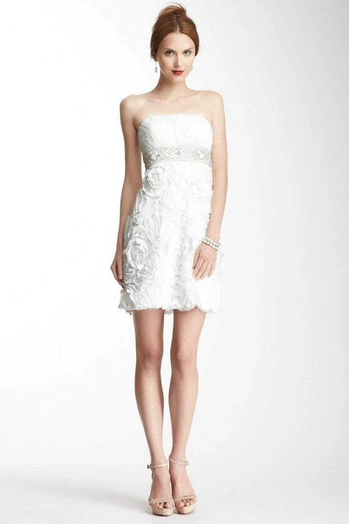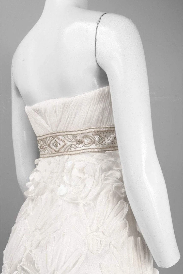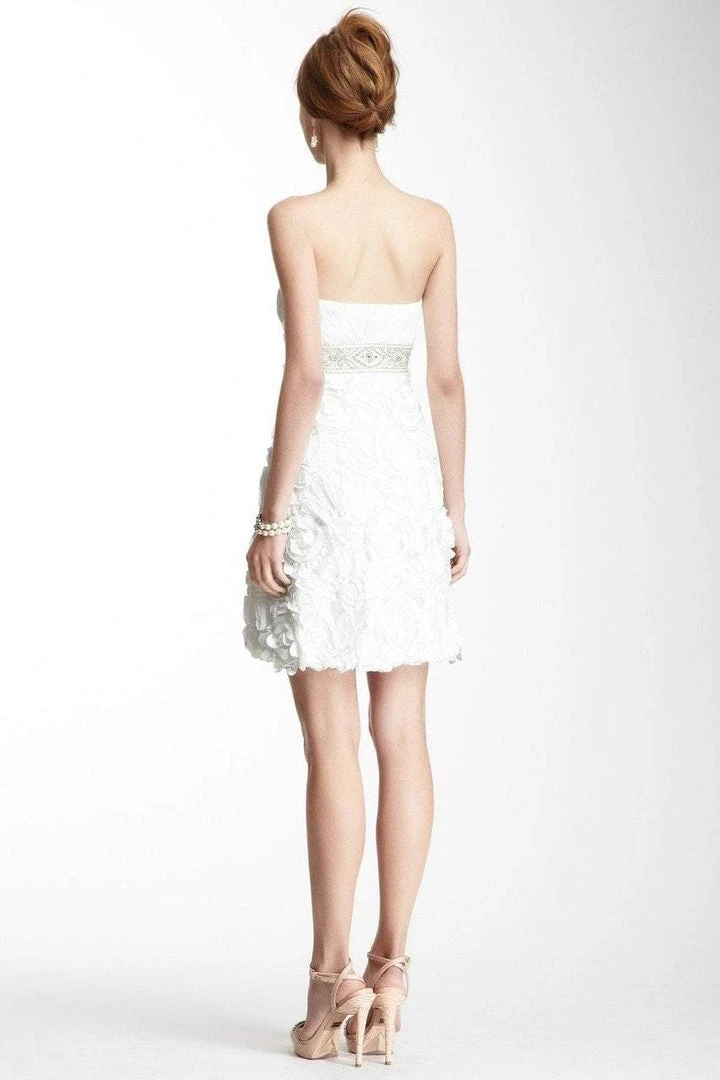 Strike a pose in front of the flashing lights of the camera in this stunning Sue Wong Z139 creation. Styled with intricately tucked on a sculpted bust, this sophisticated darling shows a strapless straight-across neckline and a mid-open back. Ravishingly crowned with a medallion and scroll beaded band on its empire waist, the sheath skirt flaunts floral appliques on a mesh fabric that skims gracefully to a short hem. Be elegantly fascinating from all angles in this Sue Wong masterpiece.