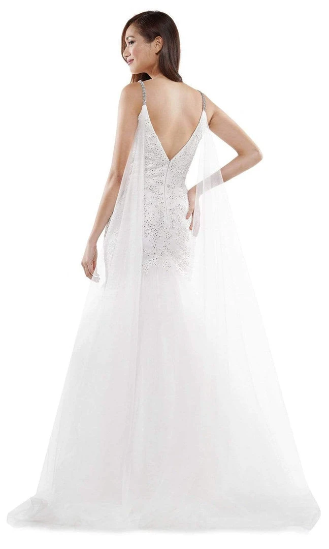 | Details: | Sleeveless, Plunging V-Neck, Lace Appliqued, Beaded, Tulle, Shoulder Cape, V-Back, Back Zipper, Sweep Train |