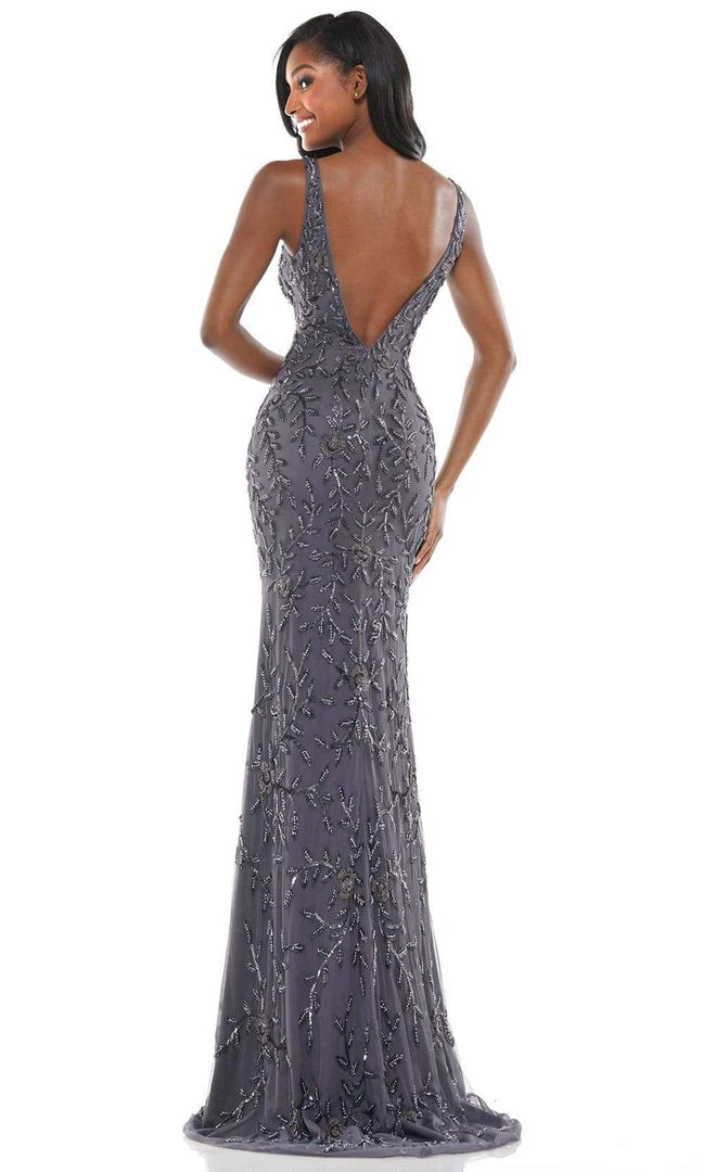 Show off your bubbly and pleasant personality with this creation by Colors Dress K102. Striking beaded appliques design the sleeveless bodice, this fitted gown showcases a low V neckline mirrored by a low V back supported by the modest shoulder strap. It has a back zipper closure. The sheath skirt blends perfectly elongate as it gorgeously finishes with a sweep train. This Colors Dress design will definitely make a statement in every occasion.