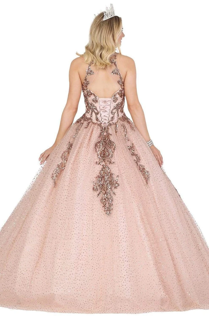 You will be an enchanting beauty in this glamorous Dancing Queen 1437 masterpiece. Striking glitter embellishments beautify the fitted bodice and trail down the ballgown skirt. A classic V neckline crowns the fitted bodice supported with spaghetti straps which lead to the sheer cutout back, secured with lace up closure. Look immaculately gorgeous in this Dancing Queen creation.
