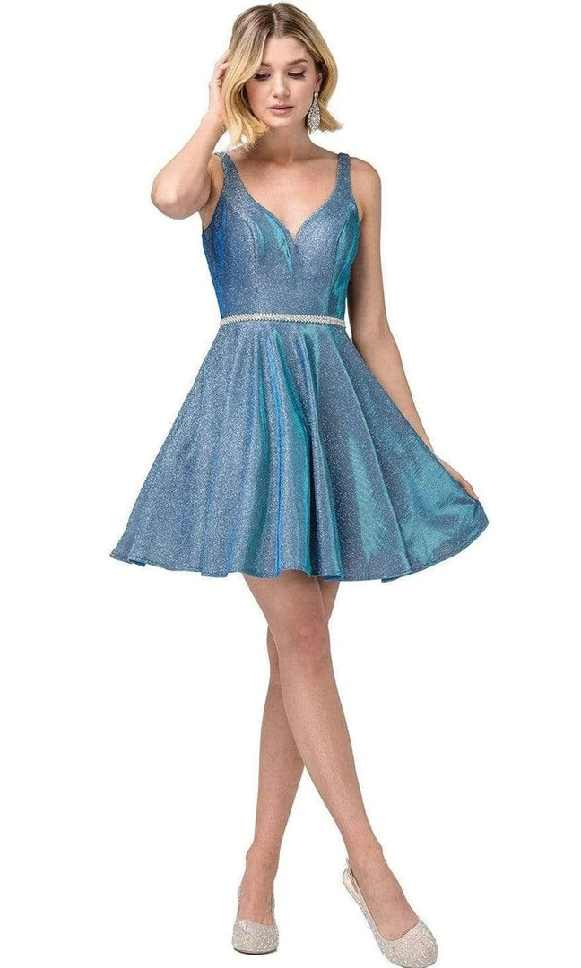 Capture the glamour as you appear in this charming Dancing Queen 3142 cocktail dress. Contoured with princess seams, the fitted bodice features a slightly curved V neckline, mirrored with a V back. The natural waist is accented with a thin belt as it gives way to the pleated a-line skirt that falls above the knees. Simple yet elegant, this Dancing Queen cocktail dress is perfect for ladies who want to be sophisticated without being suggestive.