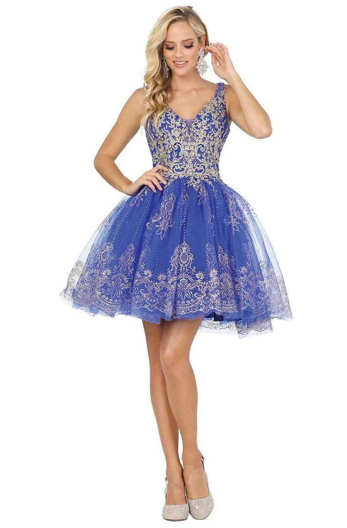 This Dancing Queen 3237 cocktail dress is fashion forward and dazzling from any angle! This adorable embellished short formal party dress showcases a beautifully beaded lace applique sleeveless fitted bodice flaunting a V neckline with small sheer inset. The fitted bodice shows off a low V-back and from the waist flourishes a sassy mid-thigh A-line skirt with matching lace applique. Fascinate the crowd wearing this exceptional Dancing Queen chic style.