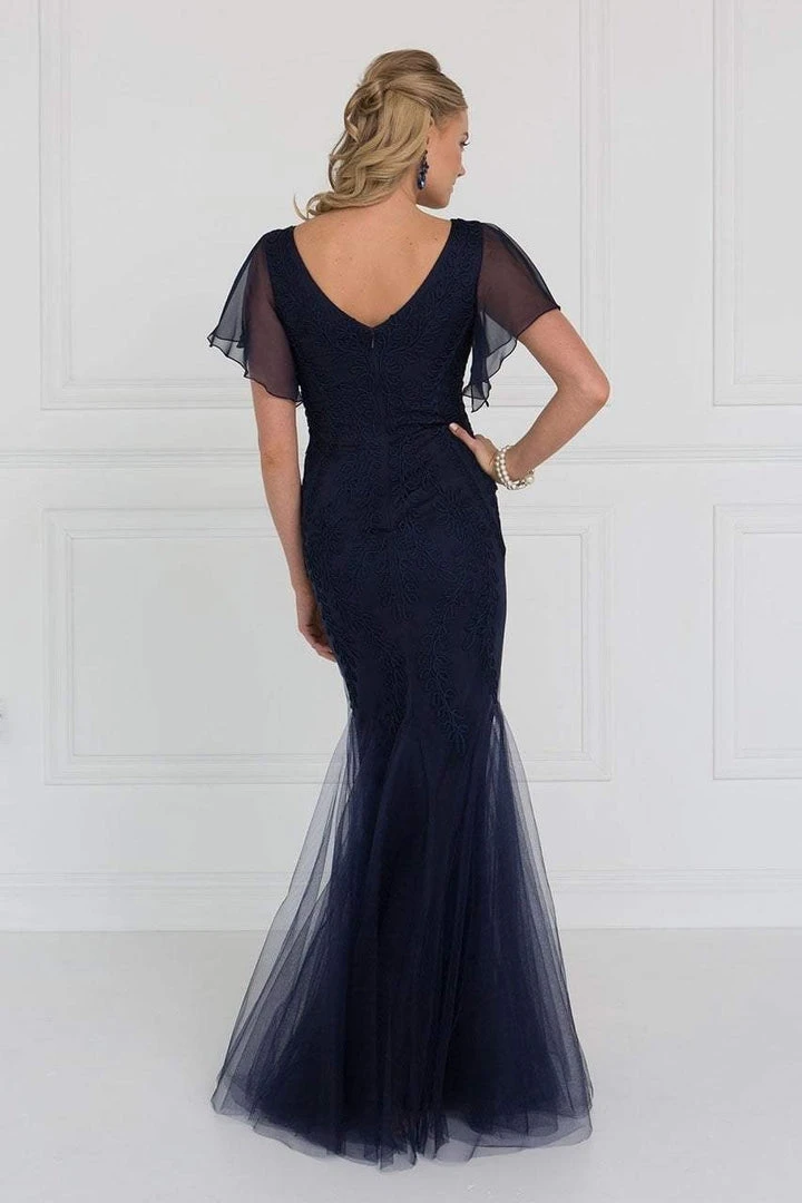 Glow with sophistication in front of the flashing lights of the camera in this ethereal Elizabeth K GL1576 creation. Amazingly textured with an embroidered trailing foliage festooned with tiny jewels along the fitted silhouette, this divine piece shows off a v-neckline accented with sheer butterfly sleeves and a delicate v-cut open back. Streaming with gossamer godets that flows in an airy flutter, the trumpet skirt skims down to create a rich full-length hemline. Be the queen of the moment as you sparkle with class in this Elizabeth K masterpiece.