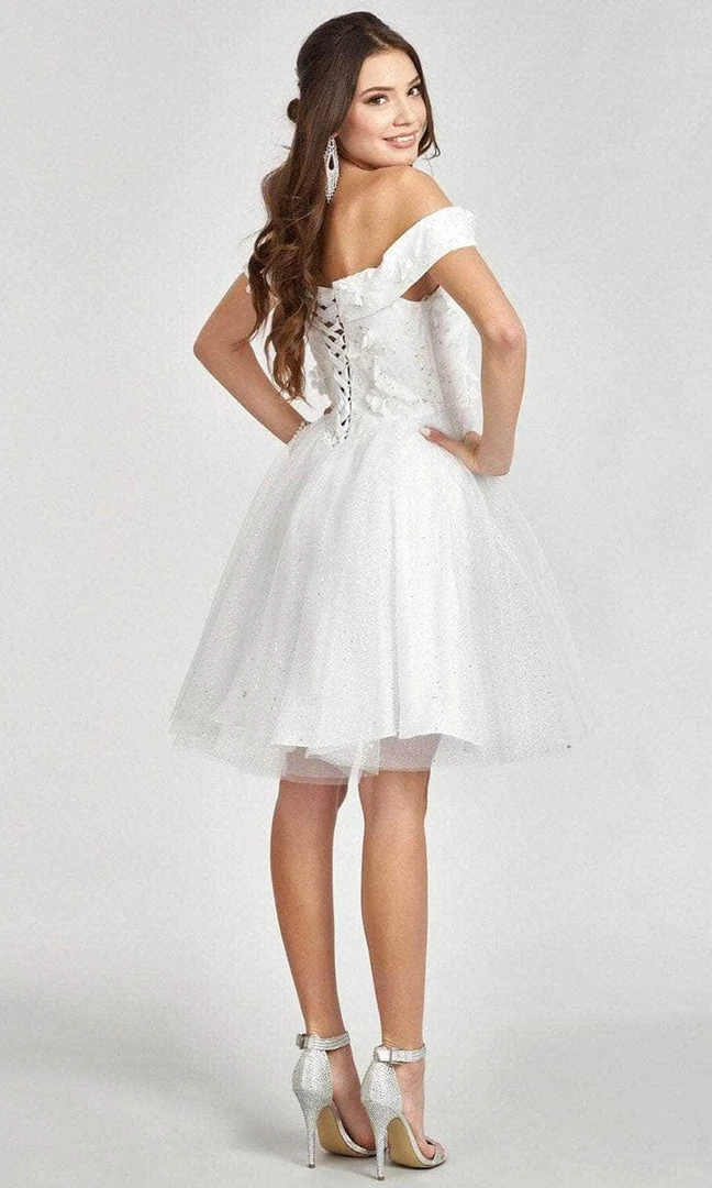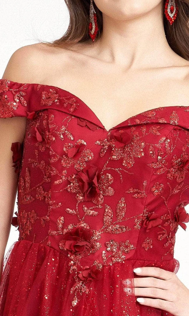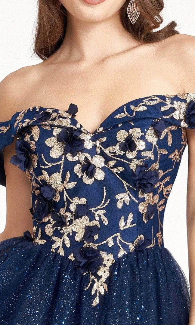 Every detail of this Elizabeth K GS1978 creation is dripping with faultless charm. Festooned with floral appliques and sequins in a floral pattern, this charming dress shows a folded off shoulder and sweetheart neckline. The mid-open back features a corset lace-up tie for an adjustable fit. Meanwhile, the sparkly glitter skirt tapers in a short A-line silhouette. This Elizabeth K cocktail dress will absolutely make you feel special!