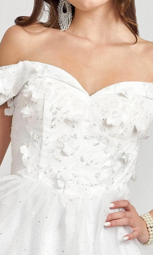 | Details: | Off Shoulder, Floral Appliques, Glitters, Sequins, Mid-Open Lace Up Back |