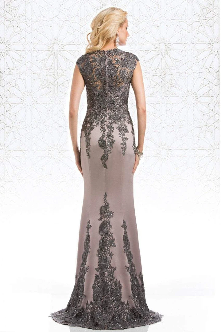 Be the lady of the night in this glamorous masterpiece by Feriani Couture 18456. This long dress is beautifully graced with a sweetheart neckline and luxurious leafy cap sleeves. Sectional creation fashions a perfect fit along the curves of bust, waist and hips, and dazzling of glittering crystals highlights the stunning silhouette. The skirt flows to a full length hem and mini train forming a gorgeous sheath silhouette. The back is enclosed with a center zipper closure. Glamour gets gorgeous with this lovely Feriani Couture design.