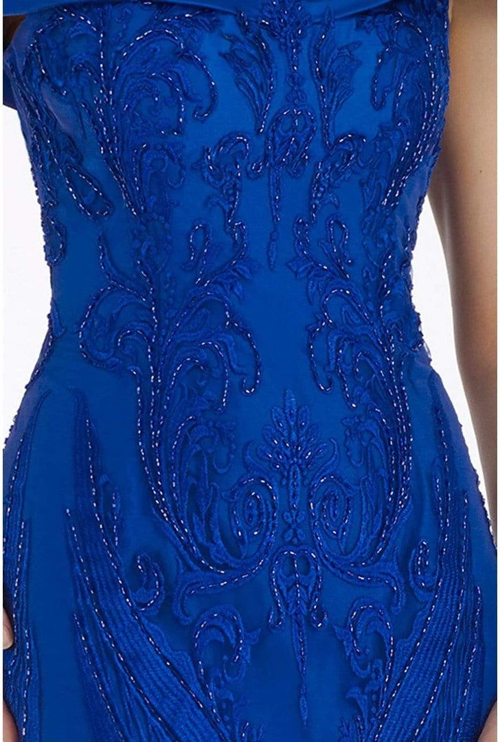 Promote attention-grabbing style in this stunning look from Feriani Couture 18900. Shows off with an off the shoulder neckline with fitted bodice styled with a zipper closure. The dress is adorned with embellishments and flourishes a full length sheath skirt. This Feriani Couture dress is perfect for any formal evening.