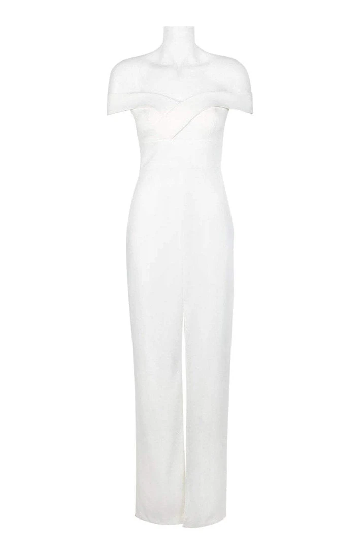 | Details: | Scuba crepe fabric, Banded off-shoulder sleeves, Princess seams, High center slit, Back zipper closure |