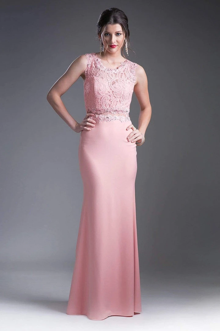 Look fantastic for your next formal event in this evening gown by Cinderella Divine CF115. This elegant dress showcases a sleeveless, scoop neckline in a sheer lace bodice with sweetheart shaped under layer. Sparkling beads embellished the lace applique that trims the neckline, armhole and the midriff. The floor length smooth sheath skirt creates an elegant finish to the dress. Capture the glamour as you walk on this stunningly gorgeous Cinderella Divine creation.
