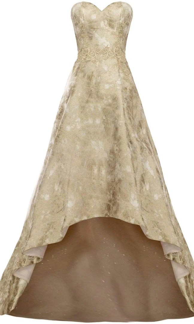 Enter the party and do that walk of a regal beauty in Janique 1680. In lovely strapless sweetheart neckline of fitted bodice and immaculately gorgeous A-line hi-lo ball gown skirt in all over embroidery fabric. This Janique creation is sure to display you natural beauty and grace.
