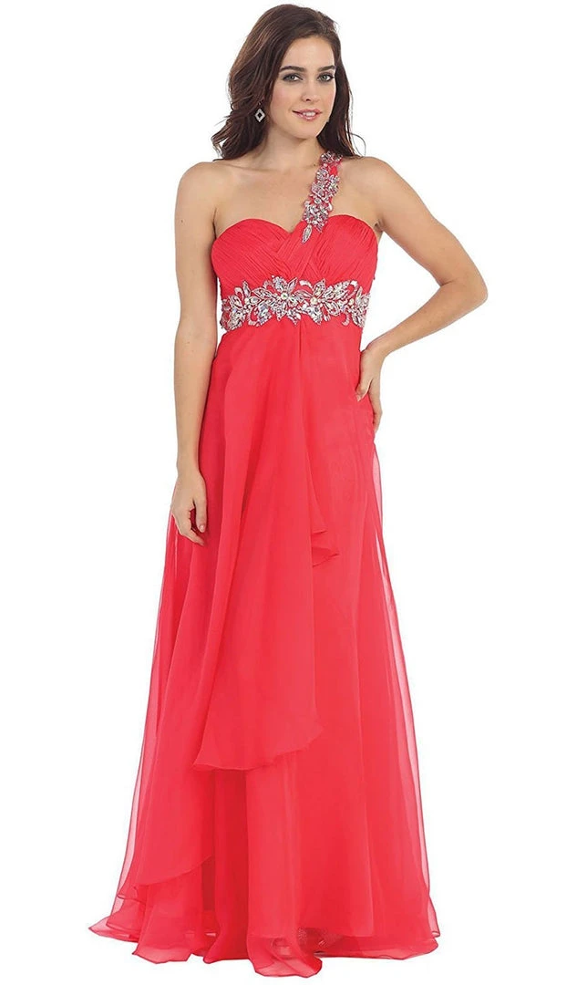 Capture that striking presence and get everyone’s attention. Models in a jeweled single strap sweetheart neckline with ruched bust. The dress boasts an empire waistline with jeweled band and strappy open back. The layered skirt cascades to the floor in an A-line silhouette. This dress will definitely bring out the goddess in you!
