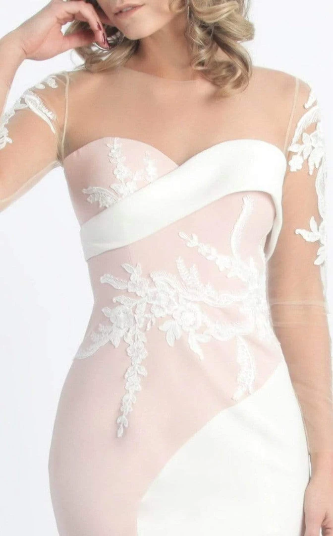 Grace your much-awaited event in high glamour and fascinating femininity in this stylish MNM Couture G0747 creation. Embellished with intricate foliage and floral embroidery contrasting its paneled silhouette, this chic piece flaunts a jewel illusion over a band-overlaid sweetheart neckline that leads to sheer ornate quarter sleeves and a sheer full back. Decorated with trailing embroidery, the mermaid skirt is segmented in contrasting panels as it streams on every curve and flares down at a full-length hemline. Lavish yourself in pure decadence in this beautiful MNM Couture masterpiece.
