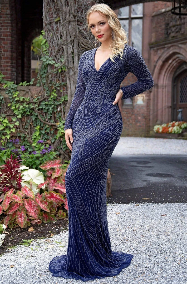 Feature an enchantingly exquisite taste in this Primavera Couture 3189 masterpiece. This stunner is beautifully designed with bead embellishments with a fitted bodice framed with a plunging V neckline and long sleeves. The sheath gown tapers to full length finished with a sweep train. A center zipper closure secures the sheer full back. Look and feel spectacular in this alluring prom dress by Primavera Couture.