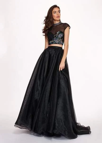 Exude a vintage appeal in this picture perfect dress from Rachel Allan 6403. This romantic two piece ensemble graces a high neckline with sheer crop top styled with cap sleeves and sweetheart lined bodice styled with floral beading. The back shows off an open detail and the skirt opens in a full length A-line silhouette with sweep train. This Rachel Allan evening gown will not let anyone miss your grand entrance.